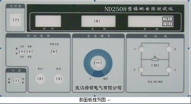 11)“測試電流”調(diào)節(jié):調(diào)此調(diào)壓器來調(diào)節(jié)輸出電壓,從而調(diào)節(jié)負(fù)載中的測試電流至規(guī)定值。